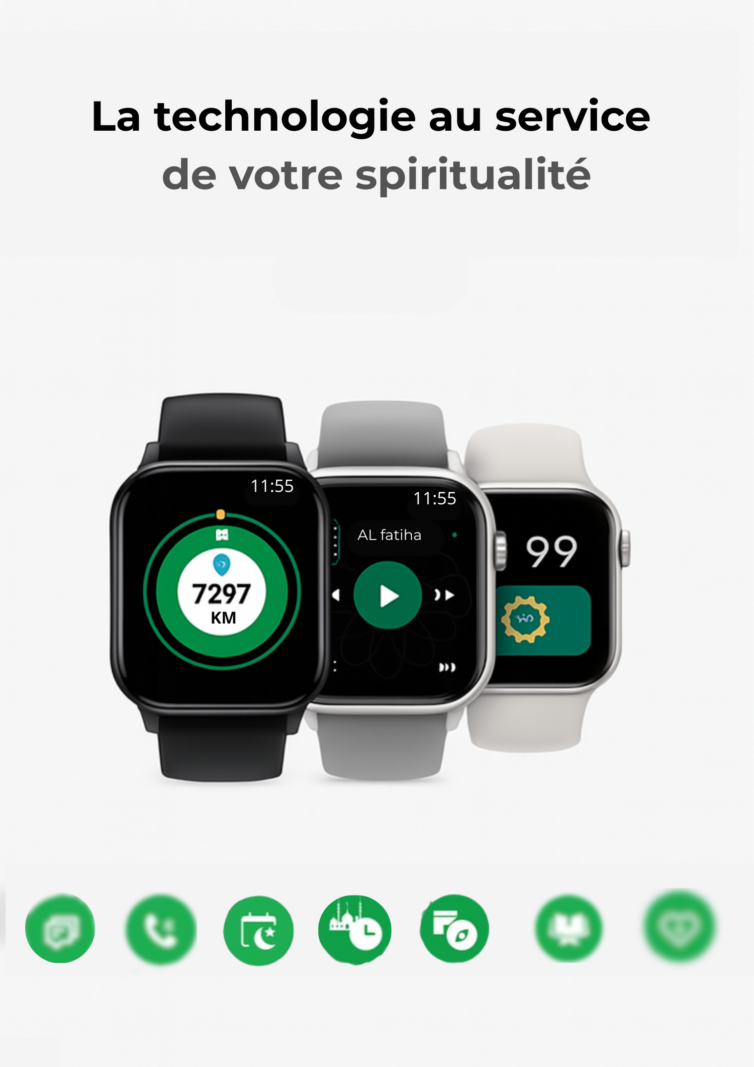 En plus de ses outils spirituels, la montre TECHSLIM vous accompagne chaque jour grâce à ses fonctions intelligentes :